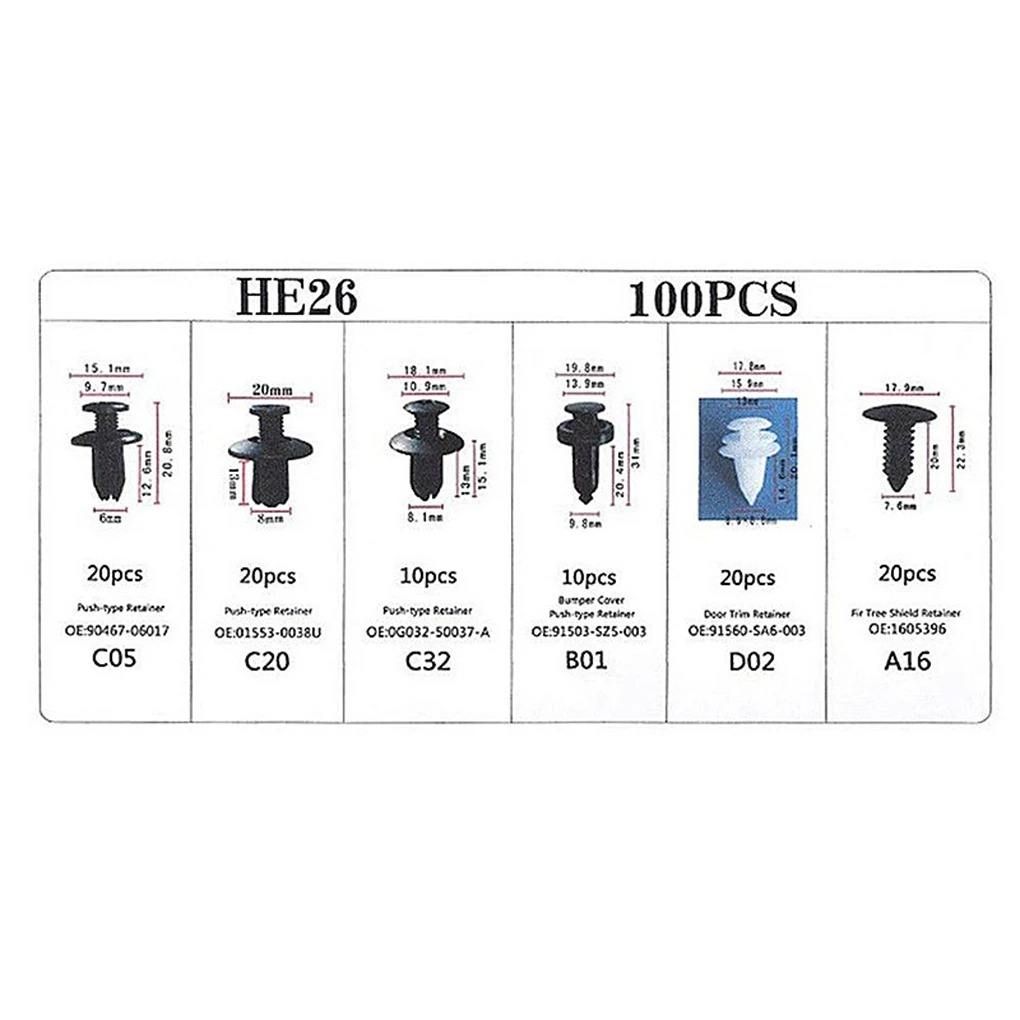 (100pcs 1set)Car Bumper Retainer Clips Fender Hole Rivets Universal Door Trim Panel Fastener Clips Screw Mix Size Auto Tool